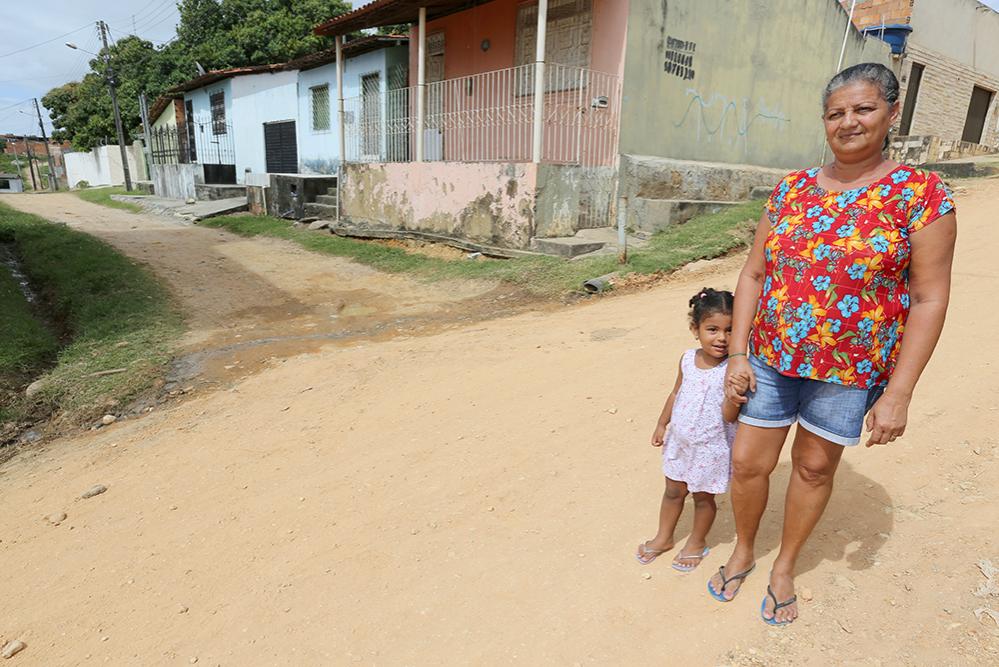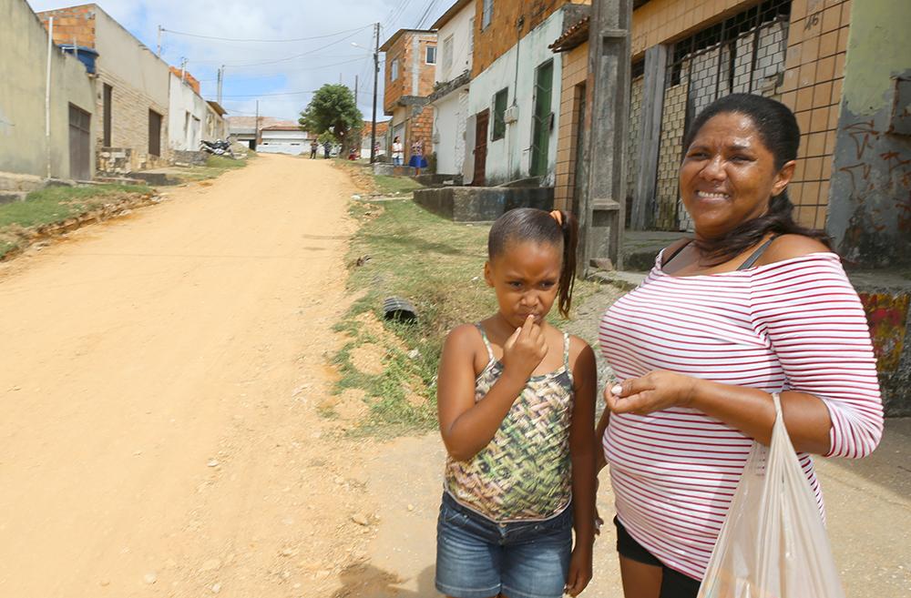“Desde que moro aqui, as ruas se encontram desse jeito: sem pavimento e sem tratamento de esgoto. Colocavam piçarra, depois a água da chuva levava tudo e fica como antes. Acredito que as ruas ficarão maravilhosas após dessa obra. Depois de tantos anos verei minha rua ser transformada”, acredita a dona de casa Maria Luzia Santos.