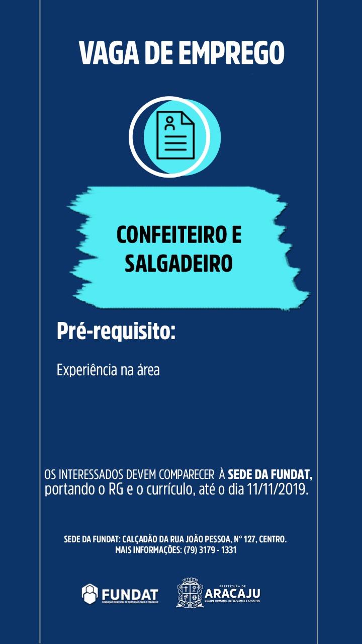 A Prefeitura de Aracaju continua oferecendo aos cidadãos novas oportunidades de emprego por meio da Fundação Municipal de Formação para o Trabalho (Fundat). Desta vez, as vagas disponíveis são para os cargos de operador de base, confeiteiro e salgadeiro, manicure, pedagoga infantil, e hostess.