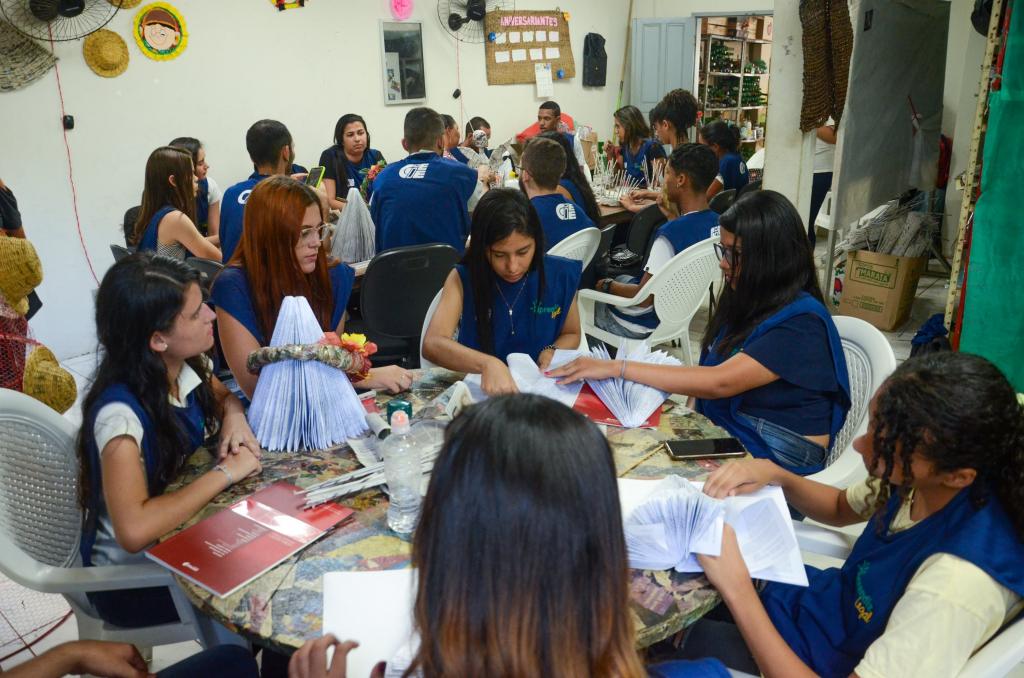 A turma foi recebida pelas artesãs que já a aguardava para repassar o conhecimento adquirido no dia a dia do trabalho que executam. “Aqui é tudo muito interessante. A gente nem imagina que uma folha de papel pode virar uma mesa e tantos outros objetos”, disse Igor Leonardo.