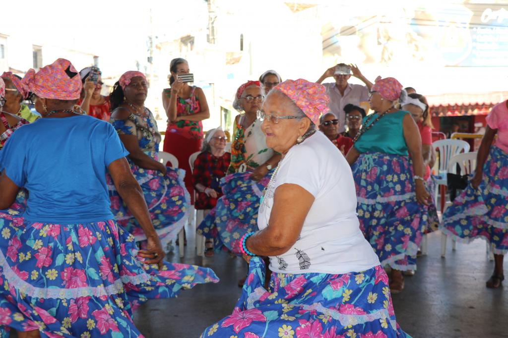 A dona de casa Ana Maria Silva, 67, foi uma das usuárias que se apresentou durante o evento. Ela faz parte do grupo de idosas “As Cirandeiras” do SCFV do Cras Pedro Averan e representou as mulheres negras dançando samba e usando turbante.