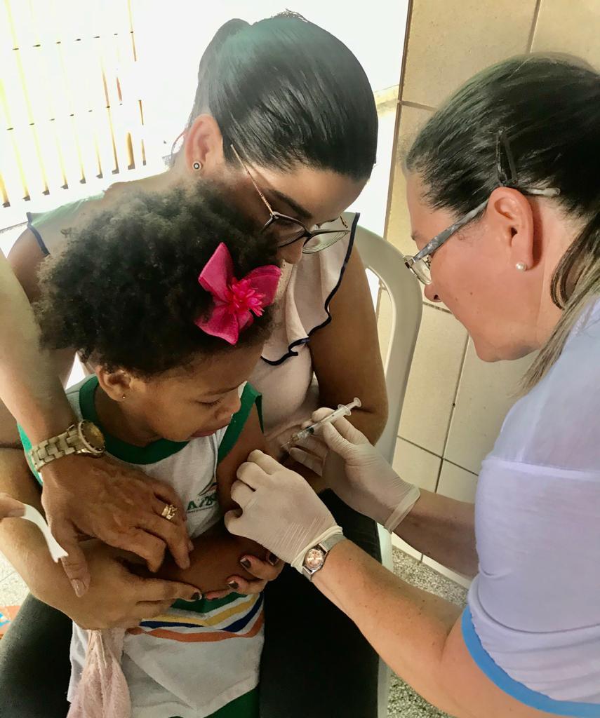 A Prefeitura de Aracaju, por meio das secretarias municipais da Saúde (SMS) e da Educação (Semed), realizou nesta terça-feira, 3, uma ação conjunta de vacinação para atualização das cadernetas da criança com até 5 anos de idade, na Escola Municipal de Ensino Infantil (Emei) Júlio Prado Vasconcelos, no bairro São Conrado.
