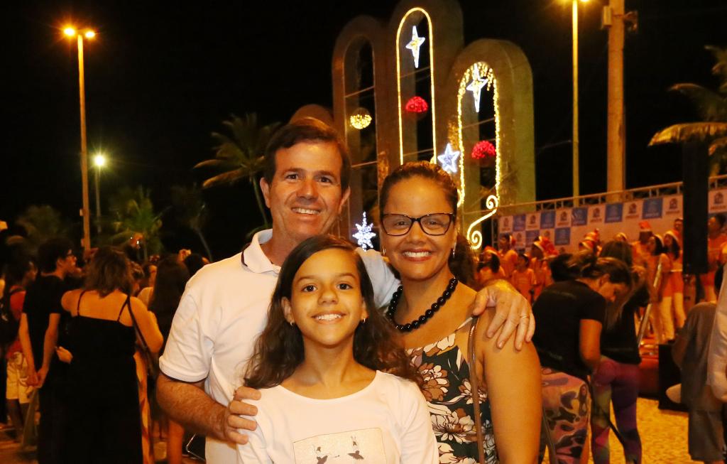 As luzes do Natal Iluminado também levaram a família Aragão à Orla. Mãe, pai e filha aproveitaram o brilho vindo da decoração para atualizar o álbum de família.