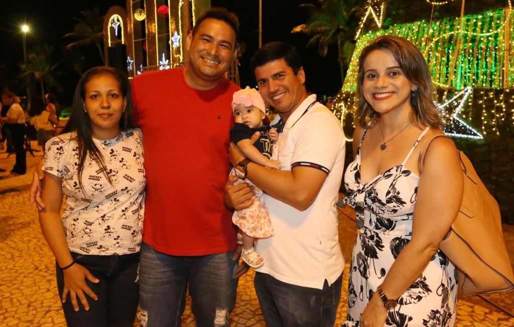 Animados com a decoração, Ludimara Souza, Alex Mota, Edson Gomes e Nara Santos se encontraram, justamente, para apreciar as luzes. O grupo de amigos se animou com a beleza da Orla e já marcaram para visitar o Centro da cidade e o Parque da Sementeira.