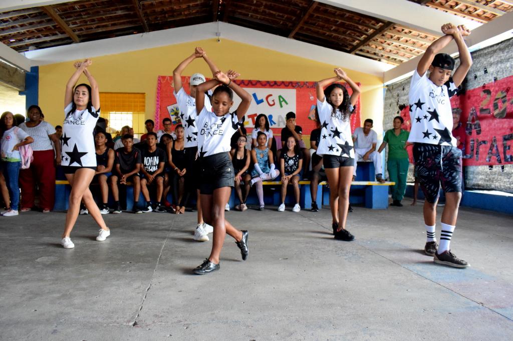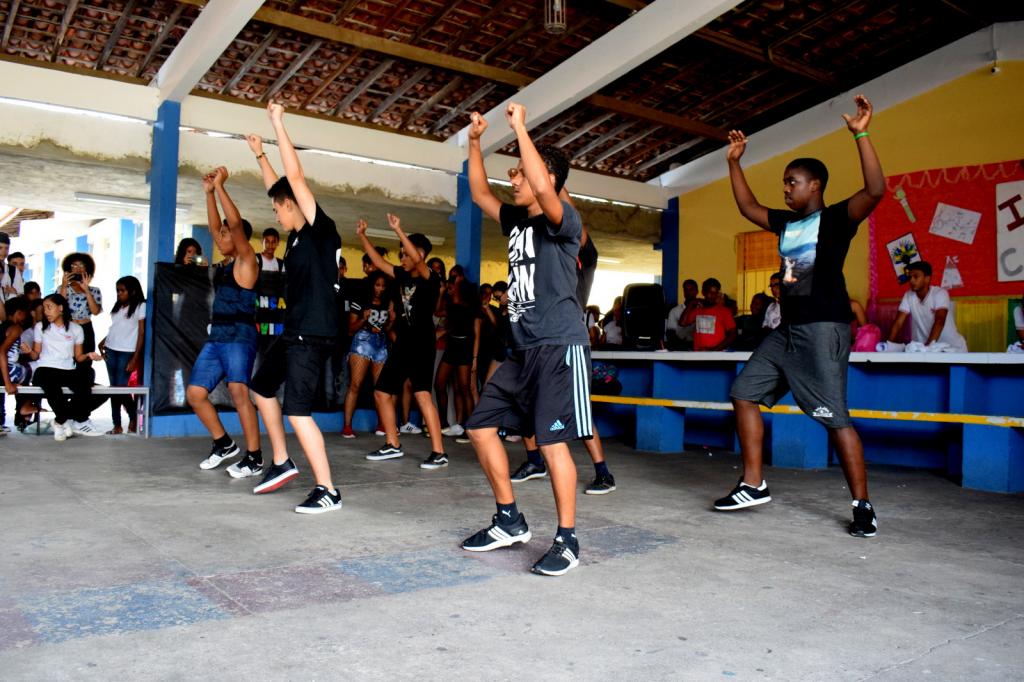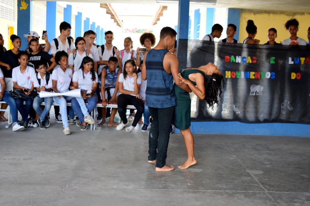 As professoras de Educação Física, Cristiane Anjos e Ana Paula Santana, trabalham com os estudantes a dança e a luta e contam que os conteúdos estão fazendo diferença para os alunos. “Resolvemos colocar na prática todo o conteúdo estudado durante o ano. Eles pesquisaram bastante e hoje estão aqui para apresentar, tanto as danças, quanto as lutas. E vamos aproveitando e mostrando para eles a diferença entre a dança cultural e educacional, e as que eles estão acostumados a consumir, que são estilos mais comerciais”, comenta Cristiane.