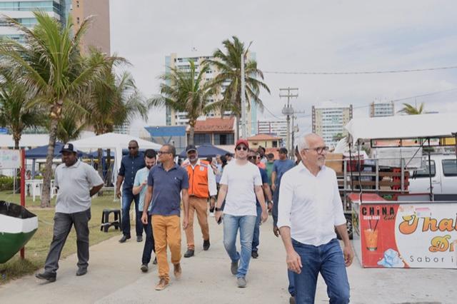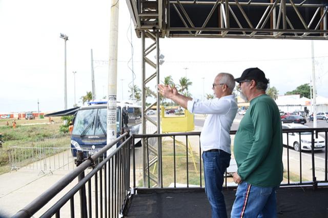 O prefeito Edvaldo Nogueira inspecionou, na manhã desta terça-feira, 31, a estrutura do Réveillon de Aracaju, na Orla da Atalaia. Acompanhado dos técnicos da Defesa Civil e da Guarda Municipal, além dos secretários municipais, Edvaldo verificou os dois palcos onde os shows ocorrerão, as áreas de comercialização, o camarote da acessibilidade, além de circular pela areia da praia para ver de perto os quatro telões distribuídos na arena onde a festa se realizará e conversar com aracajuanos e turistas. O Corpo de Bombeiros também esteve presente na inspeção.
