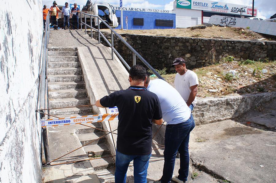 A Prefeitura de Aracaju, por intermédio da Defesa Civil Municipal, interditou uma antiga passarela que interliga a rua sargento Lauro José à avenida Chanceler Osvaldo Aranha, no bairro Novo Paraíso. A adoção dessa medida preventiva é decorrente da constatação de desgastes pontuais em algumas partes da estrutura da passarela.