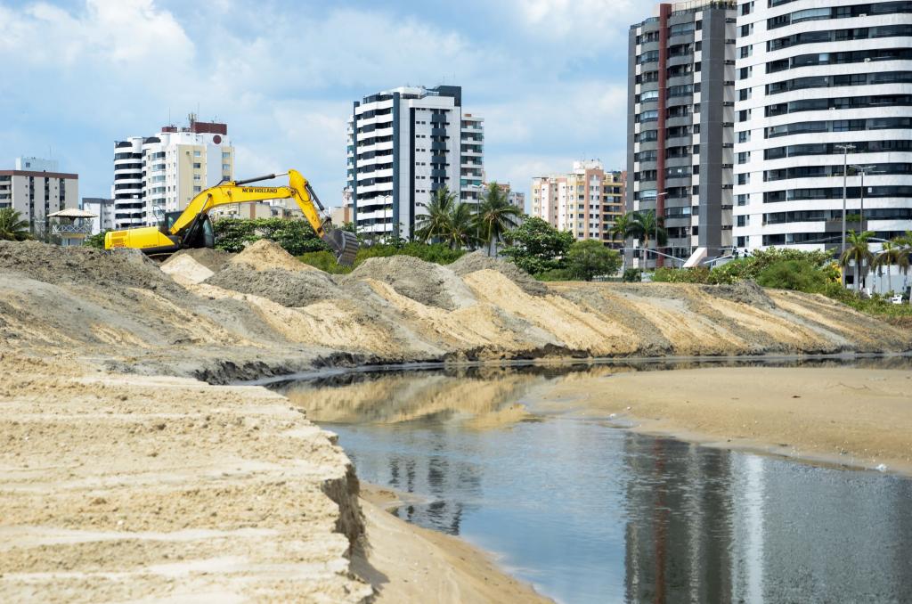 A desobstrução na saída do canal da avenida Anísio Azevedo, na região da Praia Formosa, também foi acompanhada de perto. Por lá, uma equipe realiza, de forma mecanizada, o aprofundamento e alargamento dos trechos assoreados. Com a remoção dos bancos de areia, lixo e outros tipos de sedimentos, a passagem da água fica mais liberada, tendo, assim, uma maior vazão.