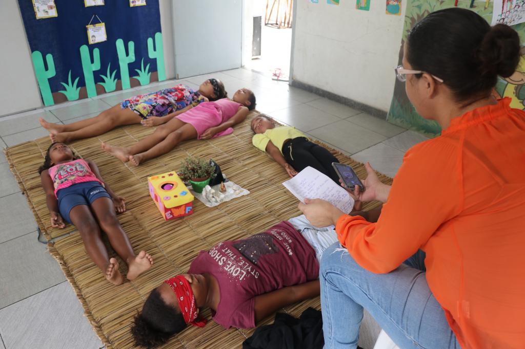 Dentro do “Alfabetização Emocional”, são desenvolvidas atividades como meditações, shantala, escalda-pés e a caixa das emoções. Todas às quartas-feiras, cerca de 13 crianças e adolescentes com idade entre sete e 15 anos, são orientados por três educadoras sociais. Para a educadora social e a executora do projeto, Elisângela Oliveira, o momento proporciona relaxamento e autorreconhecimento.