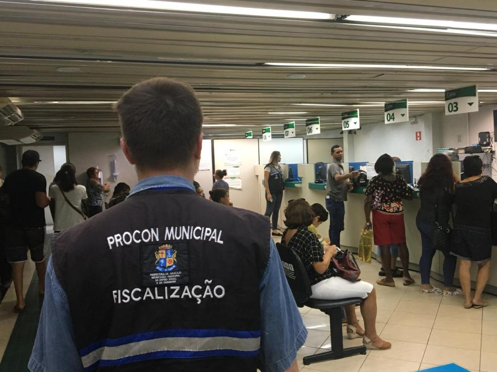A Prefeitura de Aracaju, por meio da Secretaria Municipal de Defesa Social e Cidadania (Semdec), atua de forma permanente pela garantia dos direitos dos consumidores aracajuanos. Neste sentido, entre segunda (10) e esta sexta-feira, 14,equipes do Programa Municipal de Proteção e Defesa do Consumidor (Procon Aracaju) vistoriaram nove estabelecimentos bancários para verificar o cumprimento da legislação consumerista, com especial atenção a lei municipal nº 3.441/ 07, mais conhecida como lei dos 15min.