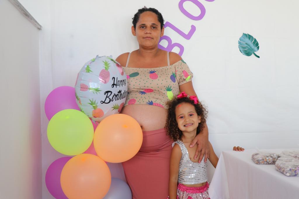 Grávida de seis meses, a usuária Viviane da Silva, 36, já é mãe de outros três filhos. Durante o evento, uma de suas filhas, Priscila, teve a oportunidade de comemorar o aniversário pela primeira vez. Além de brinicar o carnaval, para ela o momento representa gratidão.
