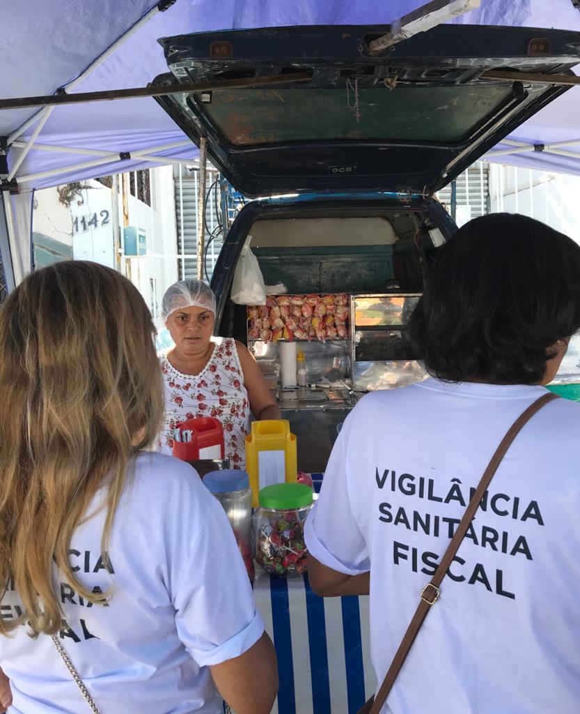 Para garantir o consumo de bebidas e alimentos com a devida procedência e tratamento, a equipe da Rede de Vigilância Sanitária (Revisa) fiscalizou ambulantes e vendedores em toda extensão do Rasgadinho. Durante as inspeções, as condições sanitárias foram verificadas. Ou seja, se os alimentos estão bem acondicionados, se o gelo está sem risco de contaminação e se as pessoas que estão manipulando os alimentos estão usando equipamentos de proteção individual (EPI’s), além de conferir o certificado de treinamento em práticas de manipulação de alimentos, exigido para autorizar a comercialização.