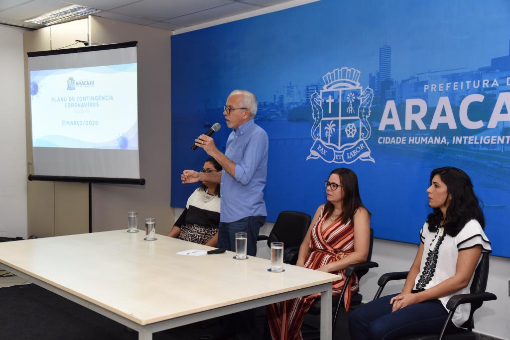 O prefeito Edvaldo Nogueira e a secretária da Saúde de Aracaju, Waneska Barboza, apresentaram à imprensa, na manhã desta segunda-feira, 2, o Plano de Contingência para o Coronavírus na capital sergipana. Eles expuseram os protocolos definidos pela gestão municipal a partir do primeiro caso suspeito identificado no município e explicaram quais medidas serão tomadas em situação de confirmação e aumento de pessoas infectadas pelo vírus em Aracaju.