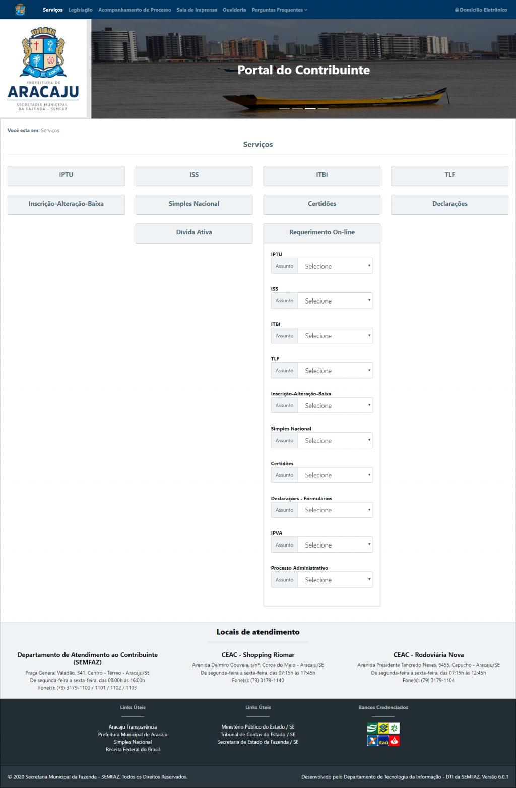 A Secretaria Municipal da Fazenda (Semfaz) da Prefeitura e Aracaju está disponibilizando para os aracajuanos cerca de 80 serviços on-line, através do Portal do Contribuinte. Com a publicação do decreto N° 6.096, a Lei nº 4.933, que dispõe sobre a comunicação eletrônica entre o órgão municipal e os contribuintes, foi regulamentada, permitindo a liberação do Domicílio Eletrônico do Contribuinte – DEC.