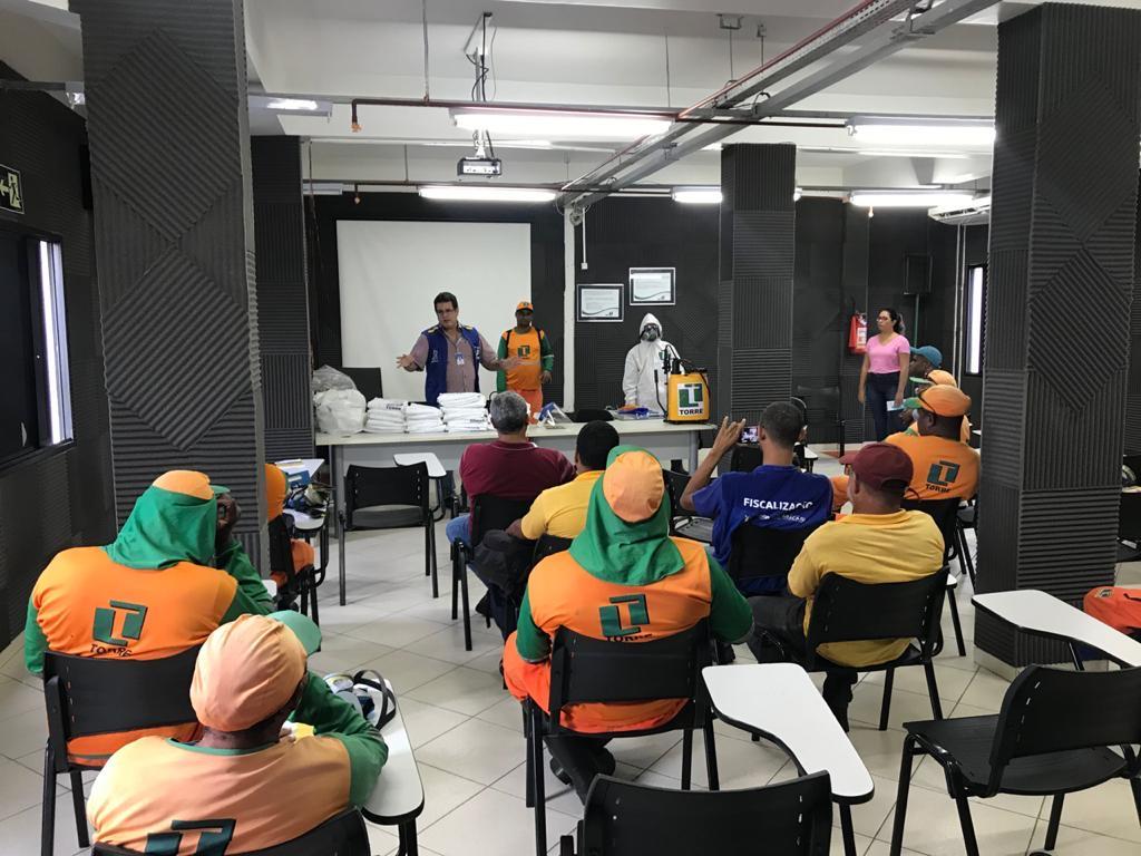 Cerca de 60 profissionais da limpeza pública atuarão no serviço, de acordo com o presidente da Emsurb, Luiz Roberto Dantas. Nesta sexta-feira, receberão a desinfecção dos terminais DIA, Leonel Brizola e dos Mercados, além das áreas próximas ao Mercado Central. Os agentes envolvidos na ação foram treinados ao longo desta semana e trabalharão com os devidos equipamentos de proteção individual. Usarão óculos, máscara com filtro para gases, luvas, macacão e respirador facial.