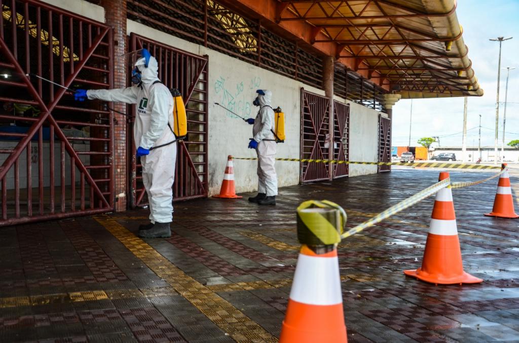 A atividade de desinfecção de áreas públicas da cidade, anunciada na última quinta-feira (26), contempla os terminais e pontos de ônibus, pontos de táxi, área dos mercados e áreas próximas a hospitais e às três unidades básicas de saúde que atendem exclusivamente pacientes com síndromes gripais.