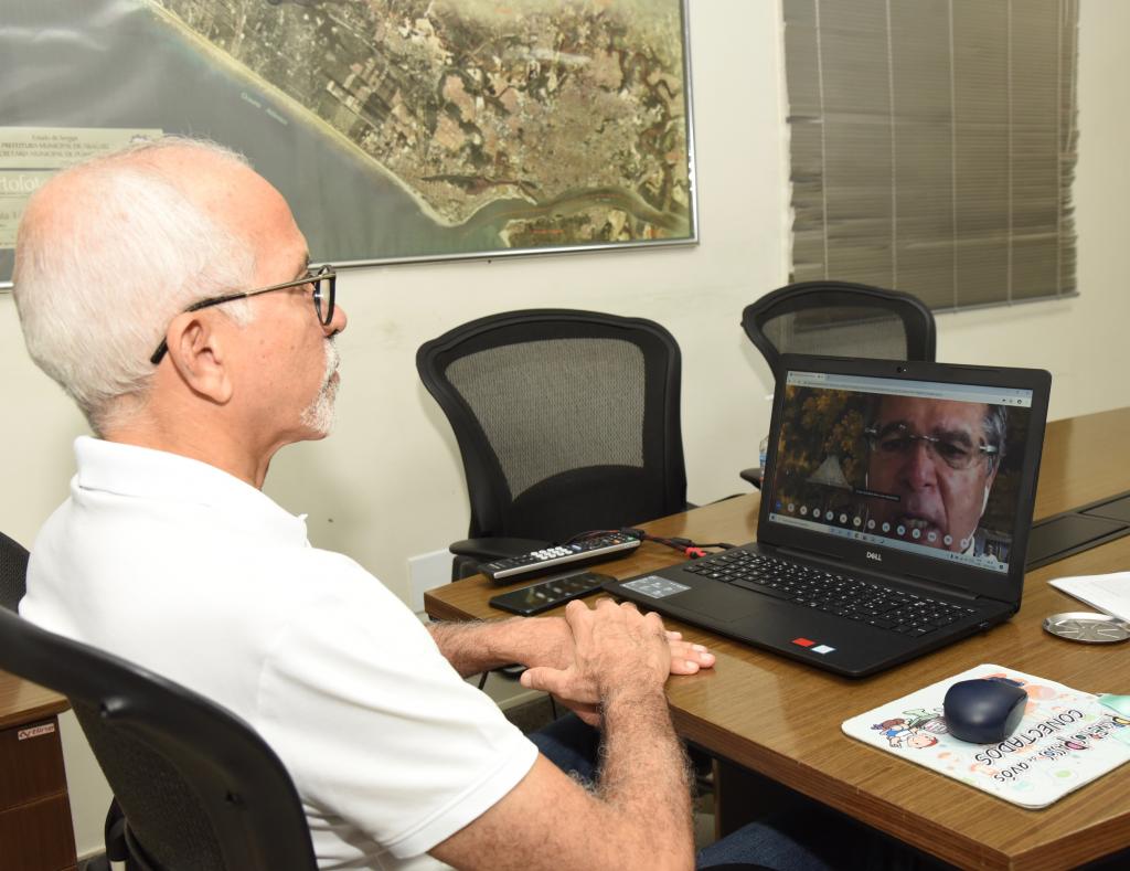 O prefeito Edvaldo Nogueira participou, na manhã deste domingo, 29, de videoconferência com o ministro da Economia, Paulo Guedes. Representante dos gestores municipais do Nordeste nas discussões sobre o coronavírus na Frente Nacional de Prefeitos, Edvaldo reivindicou a liberação mais rapidamente possível do auxílio emergencial de R$ 600 para os trabalhadores sem carteira assinada. O prefeito afirmou que a Prefeitura de Aracaju já possui o cadastro de ambulantes, taxistas e demais trabalhadores informais, o que agiliza a identificação daqueles que terão direito ao benefício e o pagamento do auxílio.