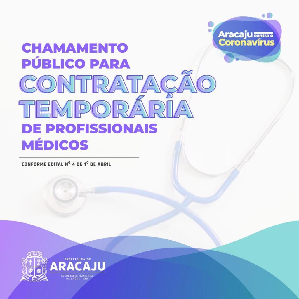 Considerando a Declaração de Emergência em Saúde Pública em decorrência do enfrentamento do coronavírus (covid-19) na capital, a Prefeitura de Aracaju, por meio da Secretaria Municipal da Saúde (SMS), torna pública a abertura de Chamamento Público para contratação temporária de profissionais médicos, visando à contratação imediata e formação de cadastro reserva, tendo em vista a necessidade temporária de excepcional interesse público para ampliação imediata das equipes de saúde.