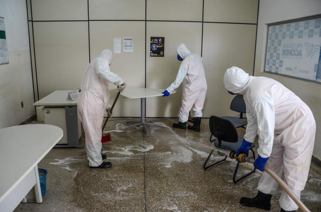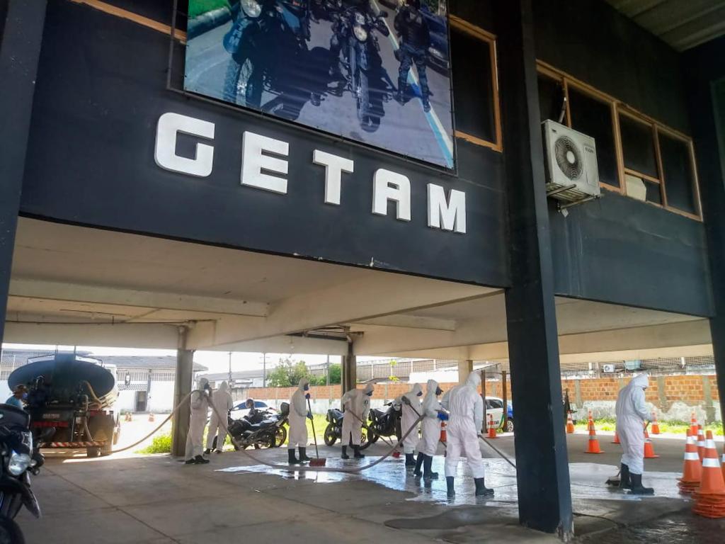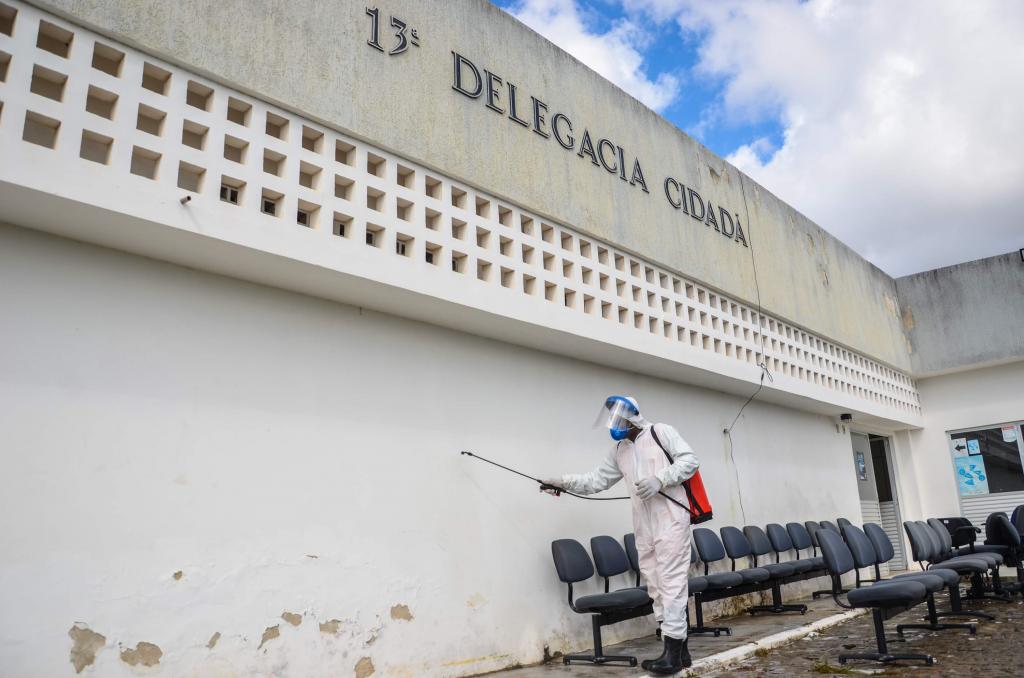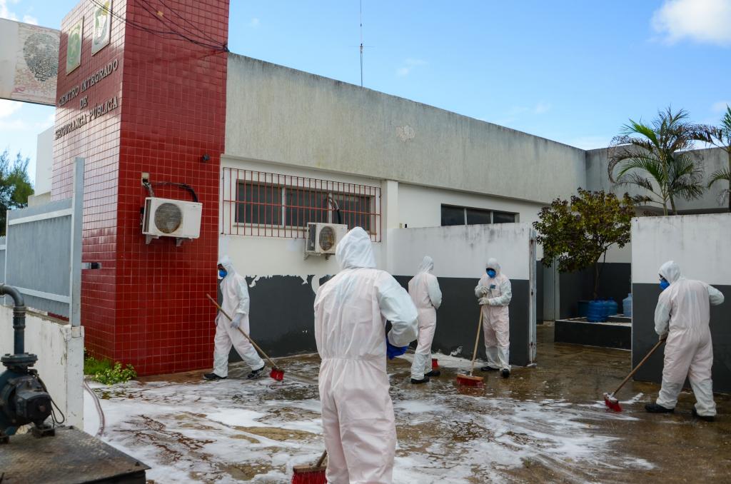 No Centro Integrado de Segurança Pública (Cisp), no bairro Santa Maria, local de trabalho de um policial militar que testou positivo para o coronavírus, os agentes realizaram um trabalho minucioso de desinfecção, que incluiu mobiliários e demais equipamentos. A atividade, que utiliza produtos com ação antibactericida e esterilizante, como o hipoclorito de sódio, foi feita ainda nas áreas internas e externas no Centro Integrado de Operações em Segurança Pública (Ciosp) e na sede do Grupamento Especial Tático de Motos (GETAM), ambos no José Conrado de Araújo.