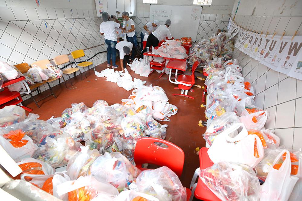 Os kits destinados aos alunos de creche contam com 18 itens. Já os kits destinados aos alunos da Educação Infantil, Ensino Fundamental e Educação de Jovens e Adultos (EJA), contém 11 itens. Além dos alimentos in natura, os pais também recebem proteína (frango) e verduras.