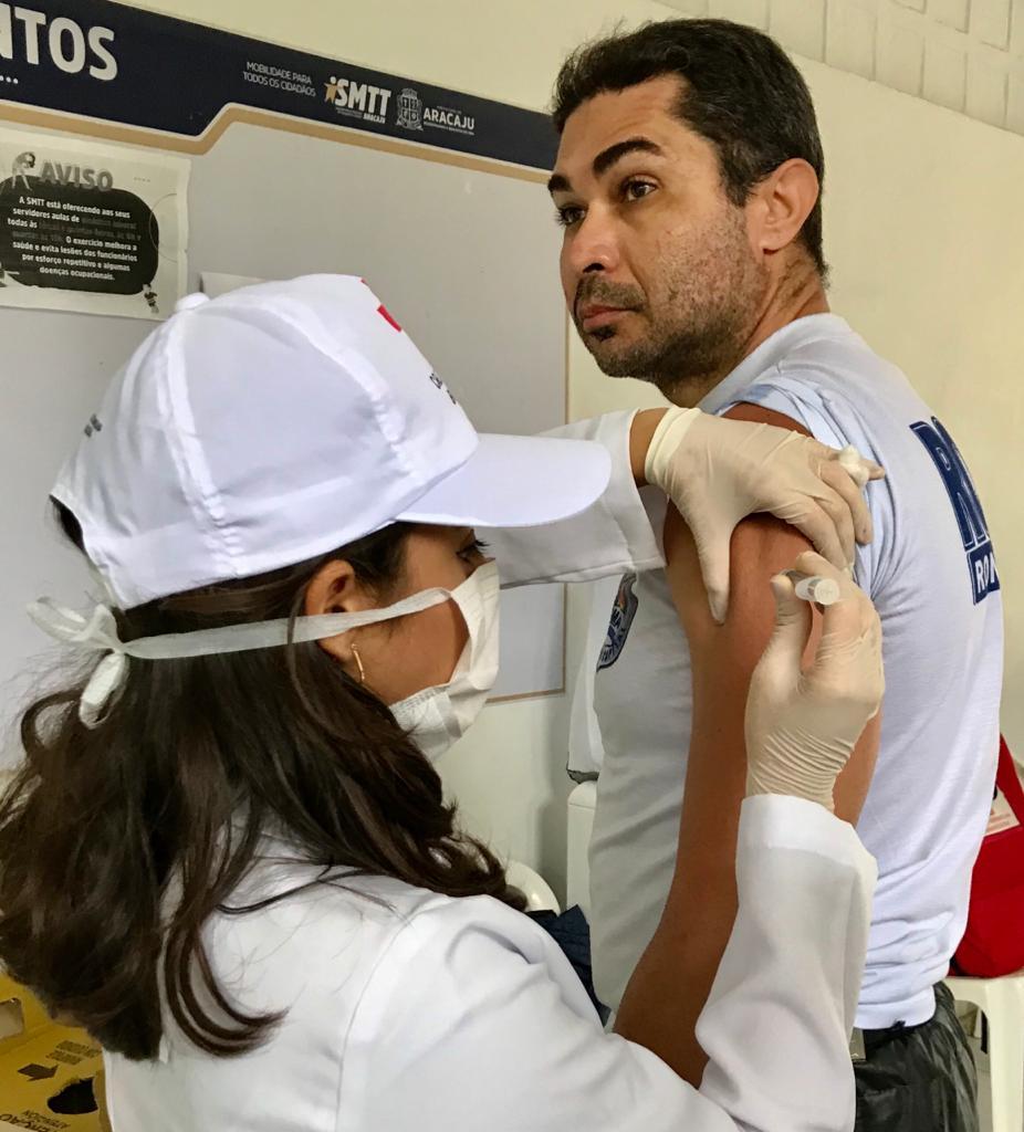 Nesta sexta-feira, 24, a Prefeitura de Aracaju, por meio da Secretaria Municipal da Saúde (SMS), realizou a vacinação de guardas municipais e agentes de trânsito na Superintendência Municipal de Transporte e Trânsito (SMTT). Esta segunda fase da campanha contra a influenza iniciou no dia 16 de abril e segue até o dia 8 de maio, contemplando os profissionais da força de segurança e salvamento, pessoas com doenças crônicas não transmissíveis e outras condições clínicas especiais; caminhoneiros, motoristas de transporte coletivo e portuários.