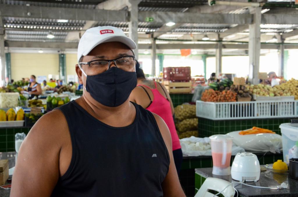 “É sensacional, pois traz mais segurança pra nós comerciantes e pra os clientes. Mas acho , também, que todos precisam fazer a sua parte. Aqui, eu não deixo de usar a máscara e nem de colocar álcool em gel, disponibilizado pela Emsurb”, comentou Elias dos Santos que possui uma banca de coco no espaço de compras.