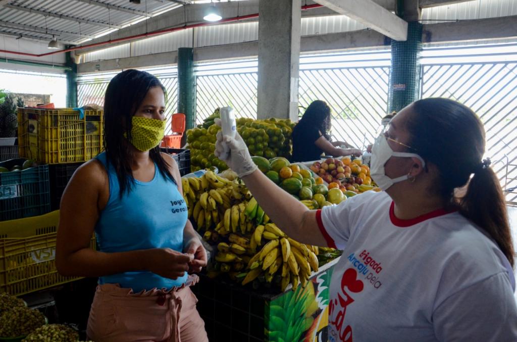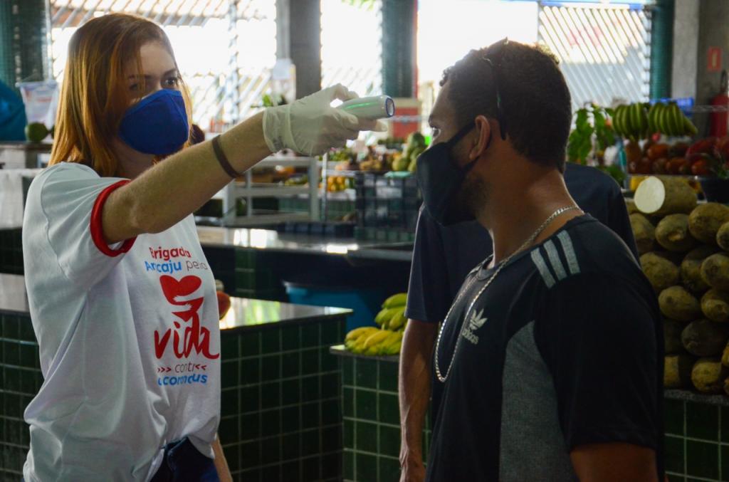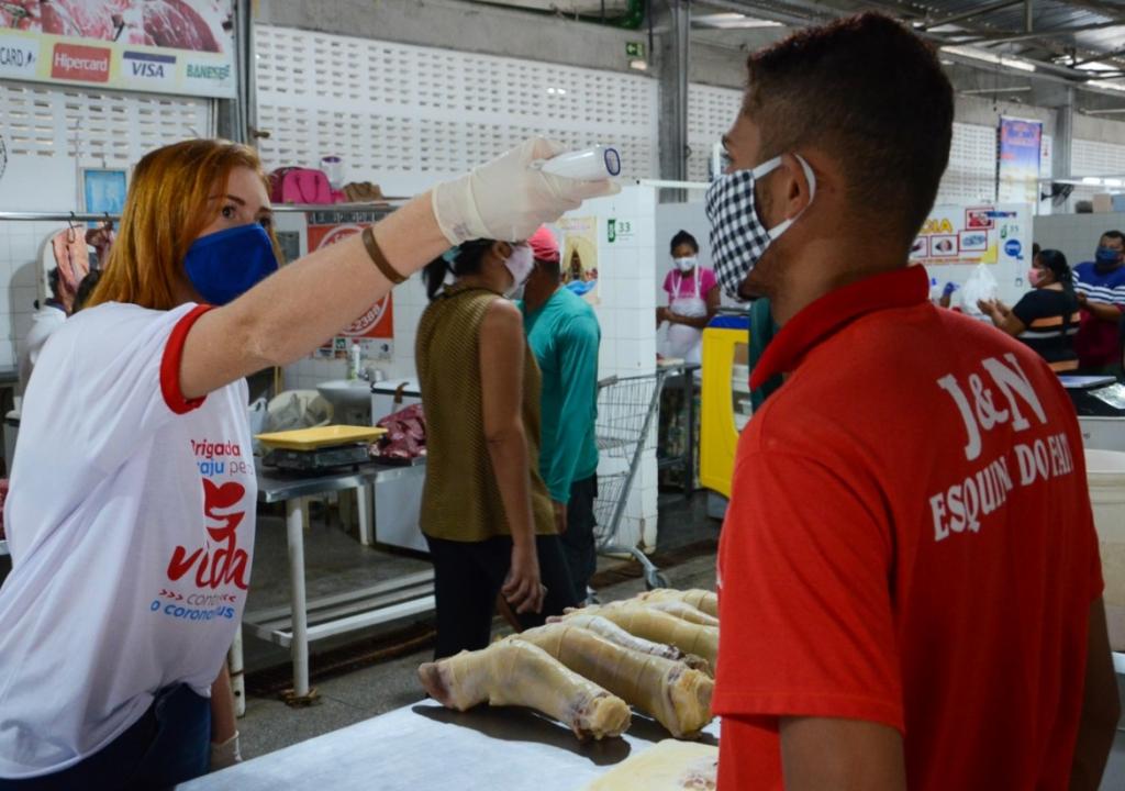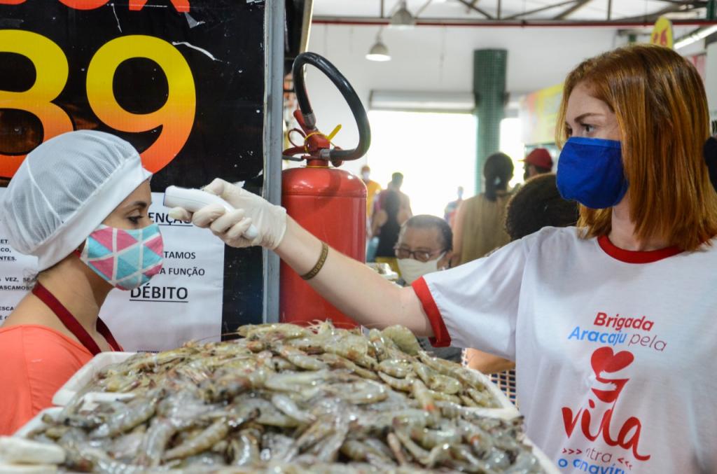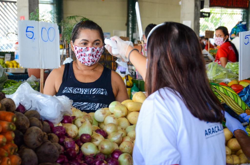 Nesta sexta-feira, 8, a Prefeitura de Aracaju efetuou o monitoramento com aferição da temperatura corporal dos 206 permissionários que exercem atividades no mercado Vereador Milton Santos, localizado no conjunto Augusto Franco, zona Sul da cidade. A ação ocorreu em continuidade ao trabalho iniciado na quarta-feira (6) no mercado central Maria Virgínia Leite Franco.