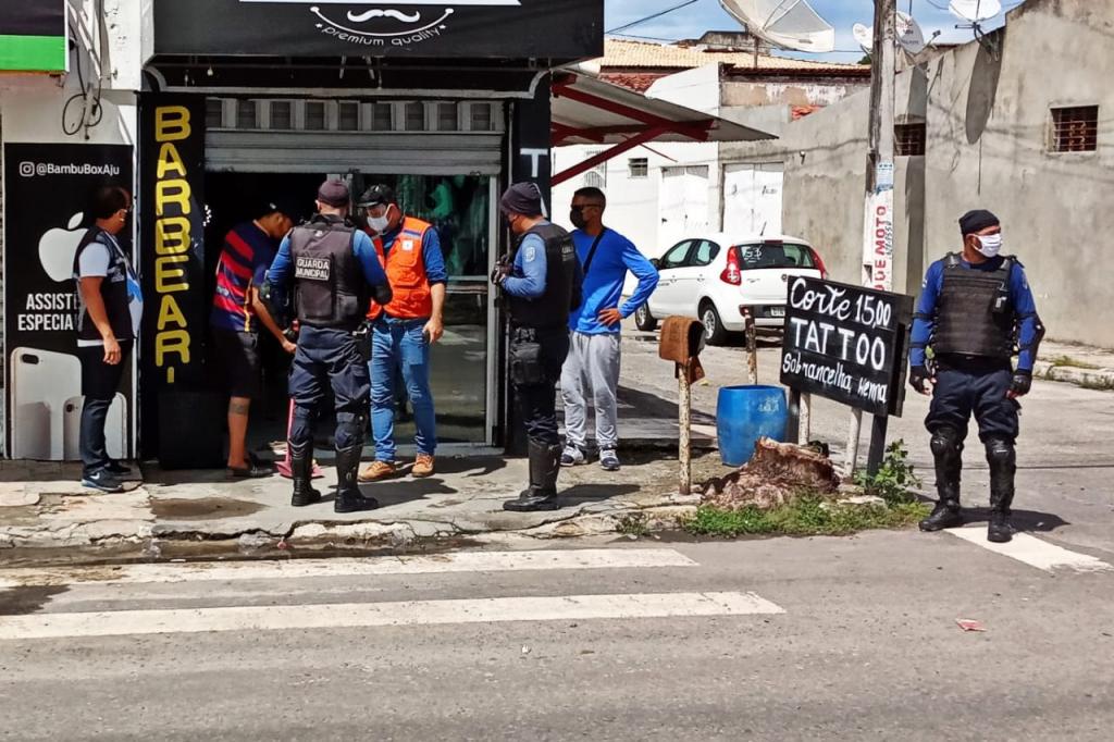 A Prefeitura de Aracaju intensificou nesta segunda-feira,11, as fiscalizações aos estabelecimentos comerciais da capital, para atendimento das medidas emergenciais de enfrentamento ao coronavírus. O trabalho desenvolvido pela Secretaria da Defesa Social e da Cidadania (Semdec), com o apoio da Polícia Militar de Sergipe (PM/SE), contemplou regiões do bairro São Conrado, no Conjunto Orlando Dantas e proximidades do bairro Santa Maria.