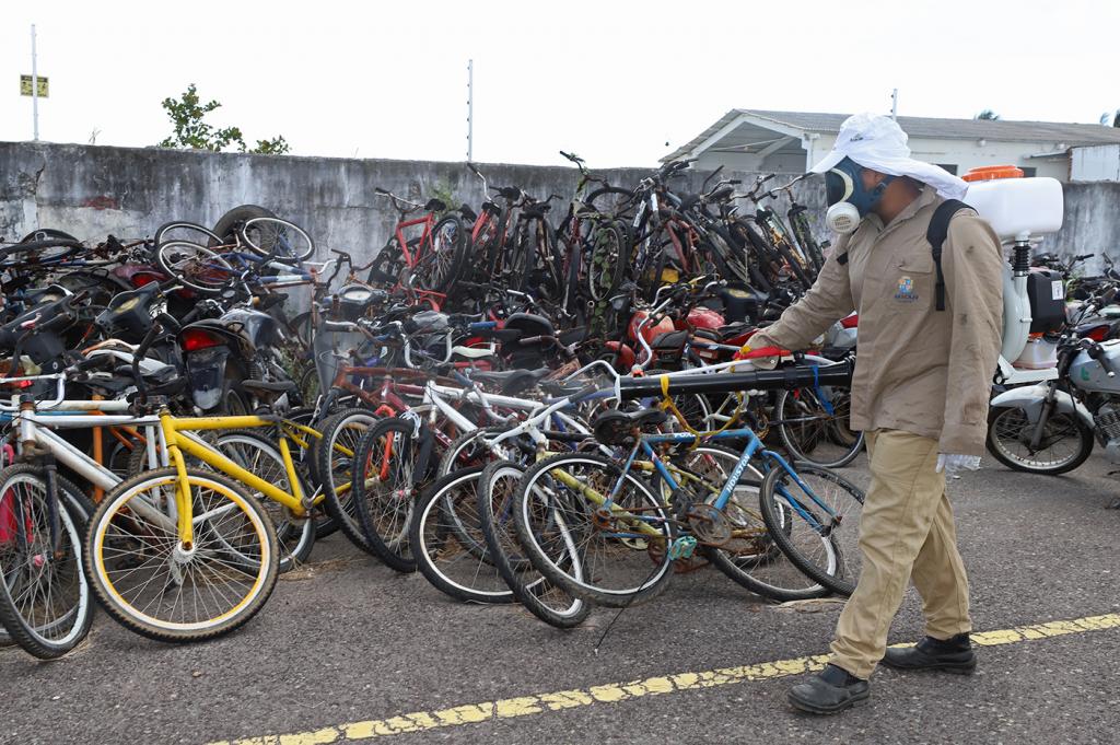 Após a aplicação, o inseticida fica no ar cerca de uma hora e trinta minutos, tempo suficiente para entrar em contato com os mosquitos, principalmente as fêmeas, que são as transmissoras das doenças. Nessas áreas, os agentes delimitam e fazem o bloqueio, com o objetivo de estancar a transmissão naquele espaço. Já nos pontos estratégicos, a ação é realizada uma vez por mês, nos locais considerados de grande concentração de depósitos criadouros como, por exemplo, ferros velhos e materiais de construção.
