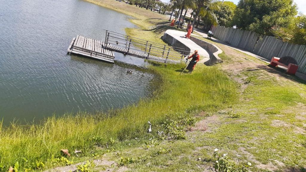 Assim, na zona Norte, onde está localizada a orla do bairro Porto Dantas, os trabalhadores da Empresa Municipal de Serviços Urbanos (Emsurb) atuaram no gadanhamento, varrição e coleta de resíduos que são despejados inadequadamente no local. Além disso, agentes também se mobilizam no corte do mato e gramado, feito por meio de roçadeiras.