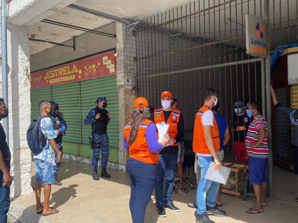 Nesta quinta-feira, 14, a Prefeitura de Aracaju, através da Secretaria da Defesa Social e da Cidadania (Semdec), realizou nova fiscalização no Centro da capital. A ação desenvolvida nas localidades onde há concentração de comércio, visa averiguar o cumprimento das medidas emergenciais previstas nos decretos de enfrentamento à covid-19.