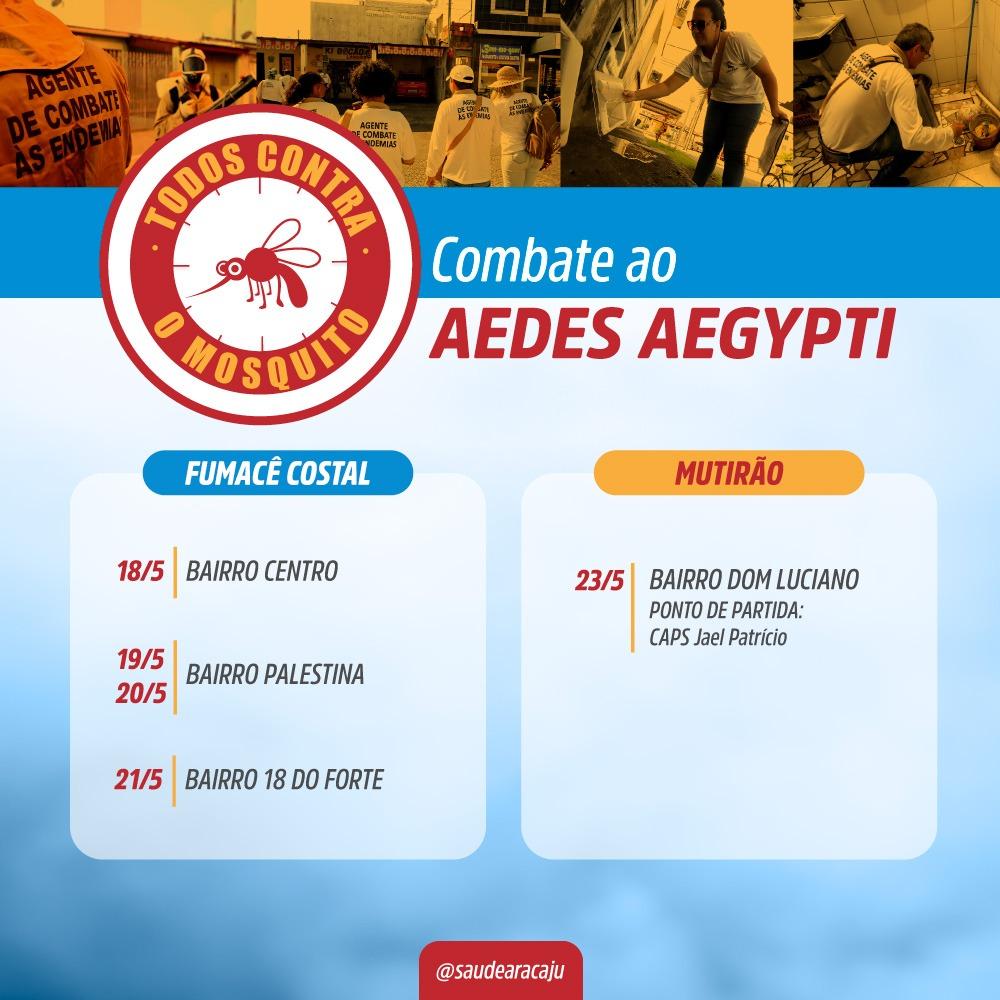 Mesmo diante da nova realidade de distanciamento social por conta do coronavírus, o trabalho dos agentes de endemias no combate ao Aedes aegypti não para, na capital sergipana. Com uma abordagem diferenciada, mas seguindo o Plano de Intensificação das Ações de Combate ao Aedes aegypti, a Prefeitura de Aracaju, por meio da Secretaria Municipal da Saúde (SMS), dá continuidade às ações de combate ao mosquito.