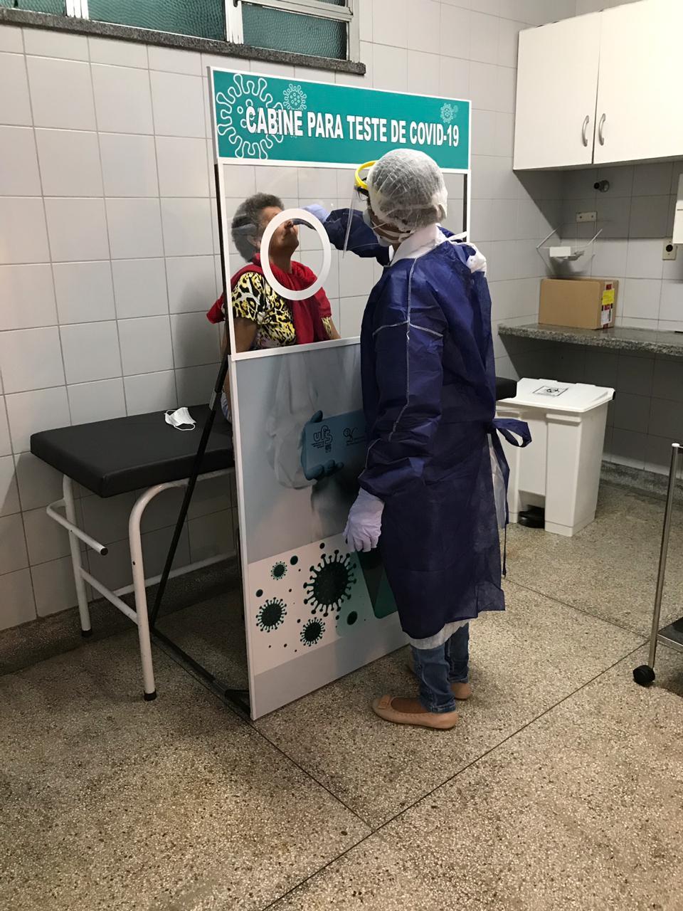 As cabines para testes da covid-19 que estão sendo criadas pela UFS têm como objetivo reduzir o risco de contágio entre pacientes com sintomas da doença e profissionais de saúde, durante a realização da coleta da amostra para exame RT-PCR, que detecta o vírus através das vias respiratórias.