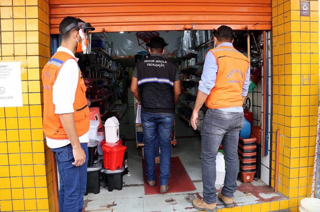 Na tarde desta sexta-feira, 29, a Prefeitura de Aracaju, por meio da Secretaria da Defesa Social e da Cidadania (Semdec), realizou uma operação para fiscalizar estabelecimentos comerciais no Centro da capital. A ação ocorreu em parceria com a Empresa Municipal de Serviços Urbanos (Emsurb) e com a Polícia Militar de Sergipe, para averiguar o cumprimento das medidas emergenciais previstas nos decretos do governo do estado e do município, para enfrentamento à Covid-19. Essa é a sétima ação integrada desenvolvida na localidade, das quais três foram em parceria com a PM.
