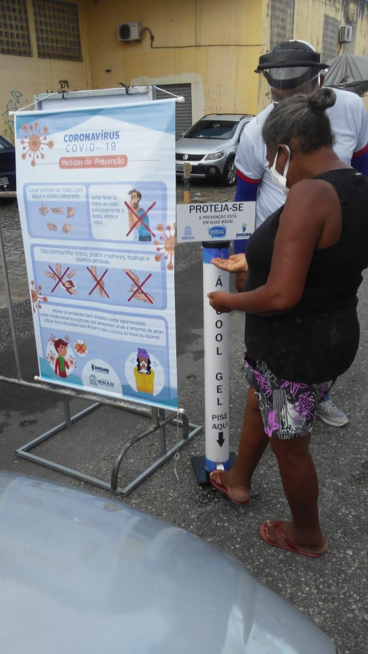 A Prefeitura de Aracaju começou a instalar nas feiras livres, unidades de toten dispenser para álcool gel ou, simplesmente, pedal gel. O produto, ja instalado neste domingo, 31, nas feiras dos bairros Bugio e Coqueiral, é mais um item de prevenção contra o novo coronavírus.
