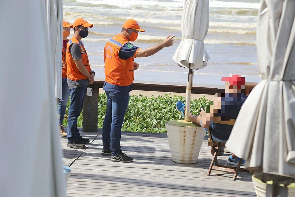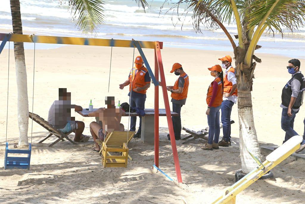 Os estabelecimentos situados em toda a extensão de faixa de areia foram averiguados, para verificação de possíveis aglomerações e uso irregular dos espaços. Algumas pessoas foram flagradas em alguns desses locais e receberam as devidas orientações, assim como os responsáveis pelas estruturas. O fato gera preocupação, apesar de apenas três bares terem recebido notificações por funcionamento indevido, dos 25 visitados.