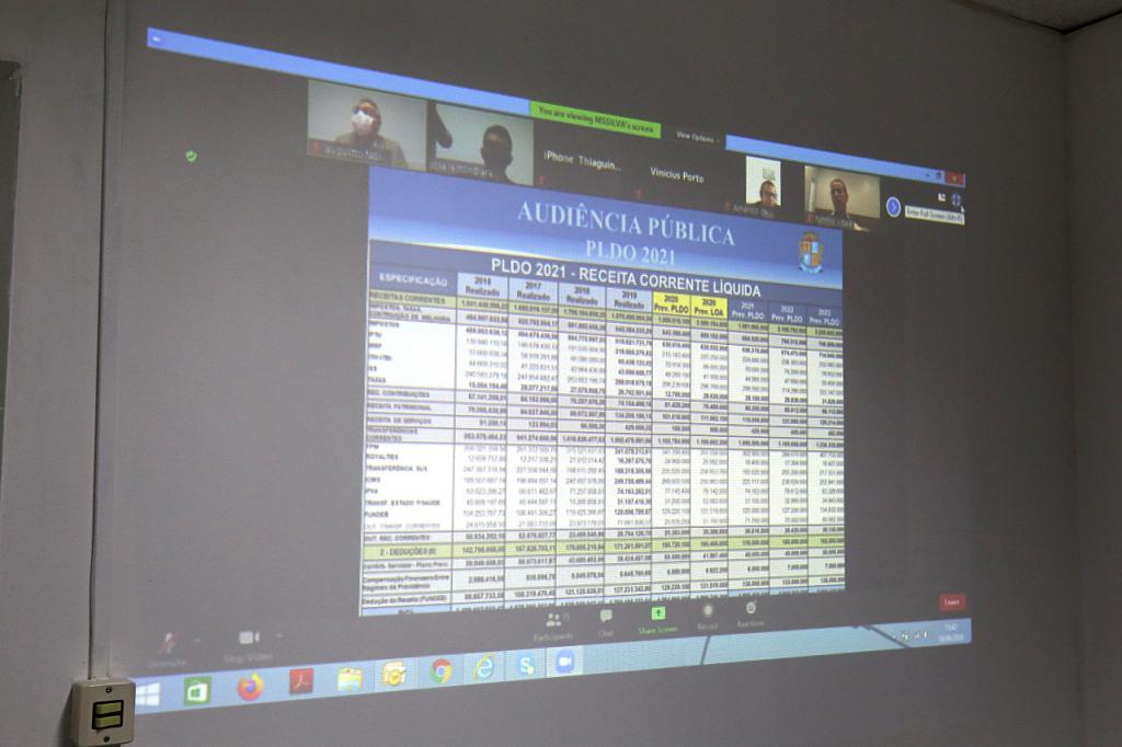 Em virtude das recomendações sanitárias decorrentes da pandemia da covid-19, foi realizada na tarde desta quinta-feira, 18, uma audiência pública virtual envolvendo os vereadores da capital, o secretário municipal do Planejamento, Orçamento e Gestão, Augusto Fábio Oliveira, e o coordenador Geral do Orçamento, José Leilton de Almeida. O foco foi o detalhamento de diversos aspectos do Projeto de Lei de Diretrizes Orçamentárias (PLDO), que encontra-se em tramitação no Legislativo Municipal, e prevê as diretrizes a serem adotadas para a execução do orçamento de 2021.