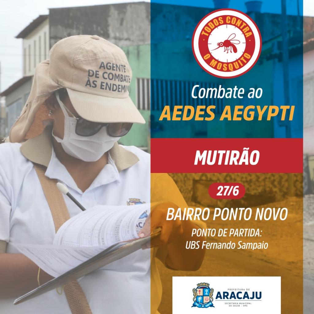 Por meio da Secretaria Municipal da Saúde (SMS), a Prefeitura de Aracaju mantém a realização do fumacê costal e dos mutirões de ações de combate ao Aedes aegypti em toda a cidade para evitar a proliferação do mosquito transmissor da dengue, chikungunya e zika. Nesta quinta-feira, 25, o fumacê acontece no bairro Ponto Novo e no sábado,dia 27, o mutirão será no mesmo bairro, a partir das 8h, tendo como ponto de partida da equipe a Unidade Básica de Saúde (UBS) Fernando Sampaio.