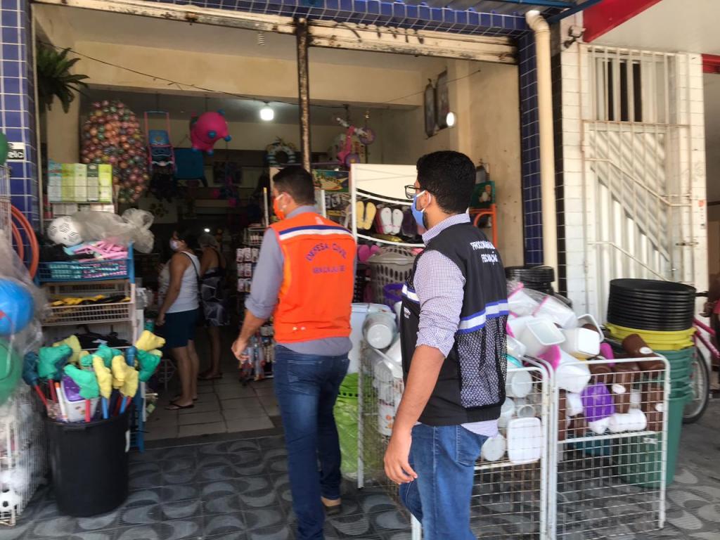 Nesta terça-feira, 7, a Prefeitura de Aracaju, através da Secretaria da Defesa Social e da Cidadania (Semdec), reforça a fiscalização ao comércio nos bairros Santos Dumont e Bugio. O objetivo é averiguar o cumprimentos das medidas determinadas, por meio de decretos, pelo Estado e do Município, para contenção do novo coronavírus, diante da reabertura gradual de segmentos para retomada da economia.