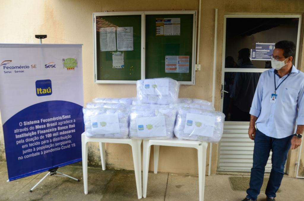 A Prefeitura de Aracaju obteve mais um reforço importante no combate à pandemia de covid-19. Nesta segunda-feira, 13, através da Empresa Municipal de Serviços Urbanos (Emsurb), a administração municipal recebeu a a doação de 10 mil máscaras em tecido da Federação do Comércio de Bens, Serviços e Turismo do Estado de Sergipe (Fecomércio)/Programa Mesa Brasil, oriundas de parceria com o Itaú.
