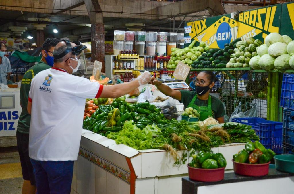 A Prefeitura de Aracaju realizou nesta quarta-feira, 15, a entrega de máscaras em tecido a permissionários dos mercados municipais. Na ocasião, cerca de 1.500 itens de proteção (reutilizáveis) foram distribuídos entre os comerciantes que estão autorizados a exercer suas atividades no mercado Maria Virgínia Leite Franco, região central, e mercado vereador Milton Santos, localizado no conjunto Augusto Franco.