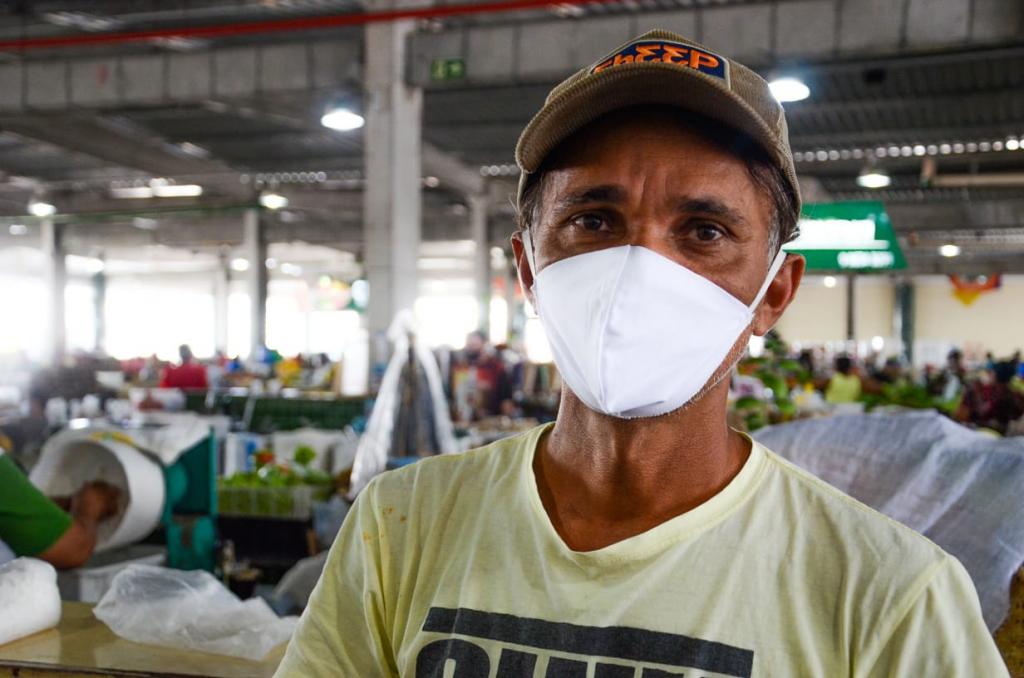 "O uso da máscara é importante para se prevenir contra a doença. Com os índices aumentando, precisamos nos precaver ainda mais para que possamos trabalhar com tranquilidade", destacou Walter de Menezes, que comercializa farinha há mais de 50 anos no mercado central.