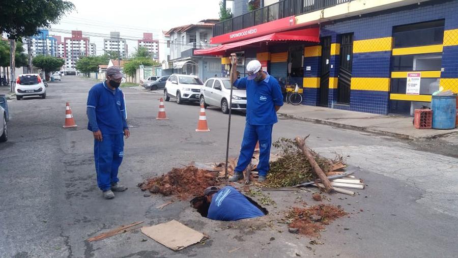 Seis equipes, totalizando mais de 60 trabalhadores, estão atuando em locais em que os sistema de drenagem necessitem de algum tipo de manutenção ou desobstrução, podendo ser executada desde uma simples limpeza das manilhas subterrâneas até a troca de parte da tubulação.