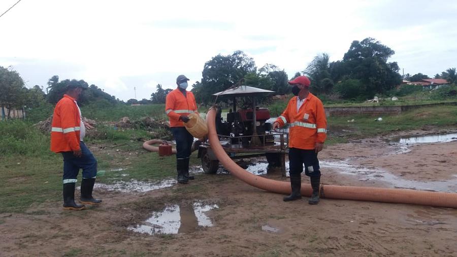 No caso das comunidades da Zona de Expansão além do trabalho manual equipes motorizadas estão atuando em ruas e estradas vicinais da região, retirando as águas retidas e realocando para as redes existentes ou direcionado para os canais naturais.