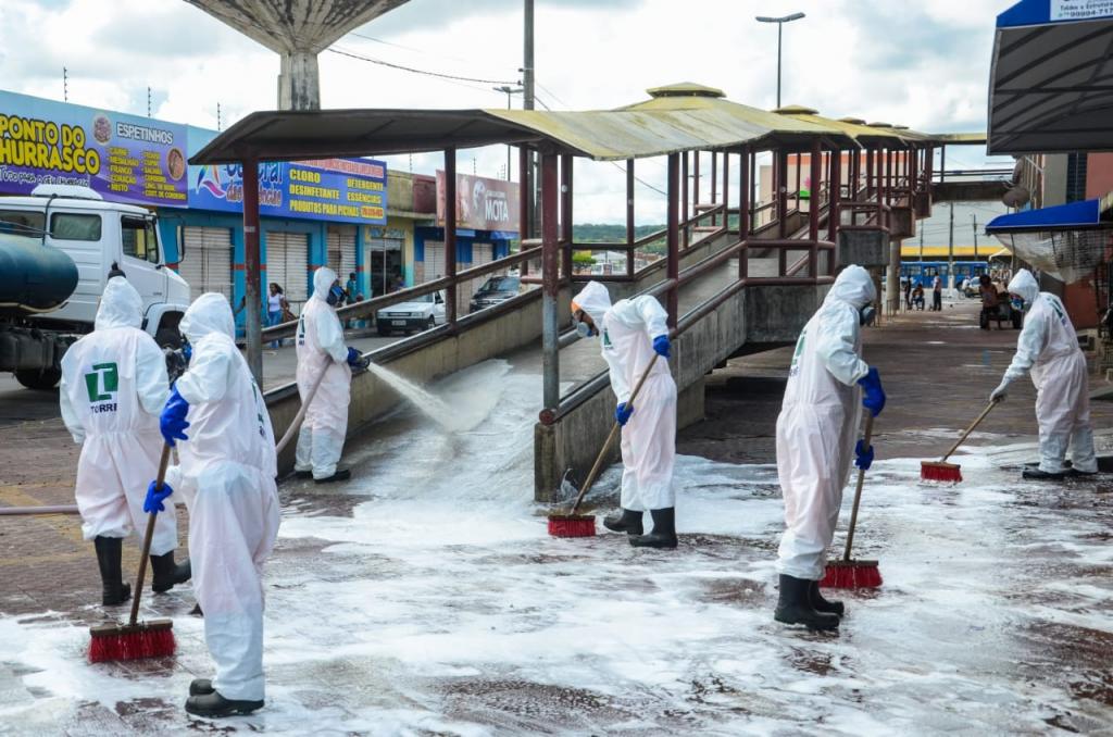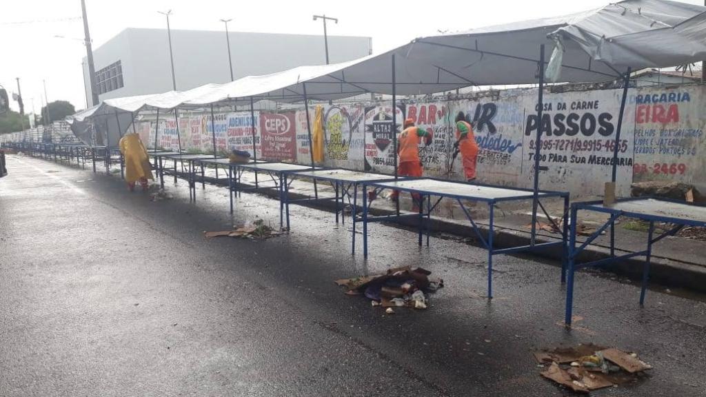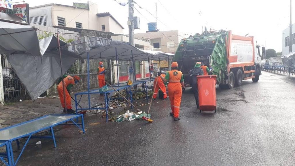 Do mesmo modo, o direcionamento das ações de limpeza e conservação em espaços públicos do município também estão voltadas às 16 feiras livres que estão autorizadas para funcionamento durante a fase de pandemia. Atendendo ao cronograma semanal da Emsurb, em cada feira, um quantitativo de, aproximadamente, 30 garis e margaridas atuam paralelo ao processo de desmontagem das estruturas das bancas, realizado pela empresa responsável.