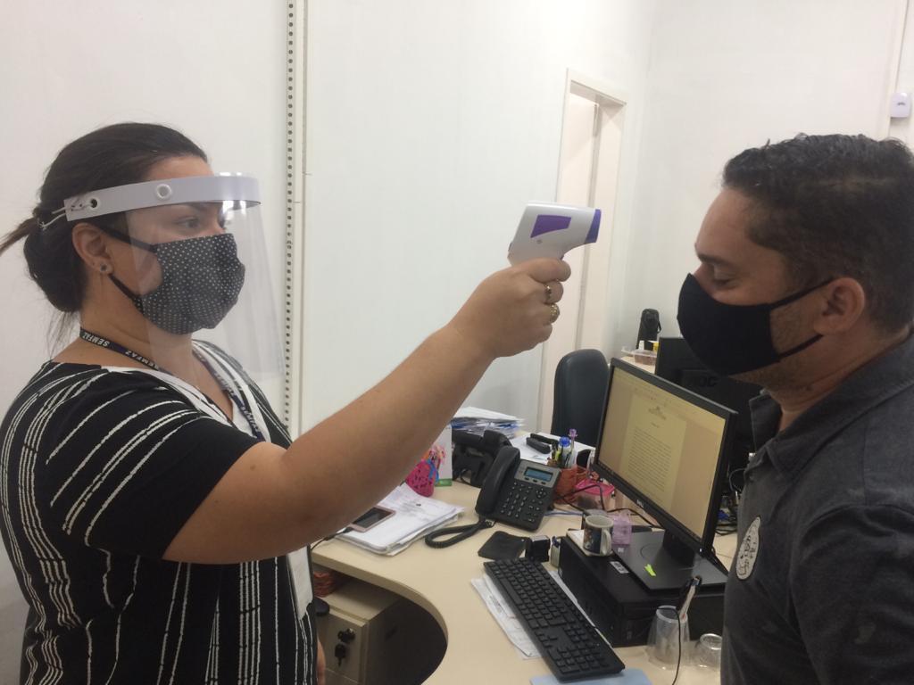 "Essa é uma medida muito importante e necessária para a segurança de quem está aqui, todos os dias, fazendo a máquina pública funcionar. Caso alguém apresente temperatura acima do normal, esse será orientado a procurar uma unidade de saúde para a adoção das medidas cabíveis", informa Gardênia. Máscaras, luvas e escudos faciais também foram adquiridos pela gestão e distribuídos entre os colaboradores que estão na sede do órgão.