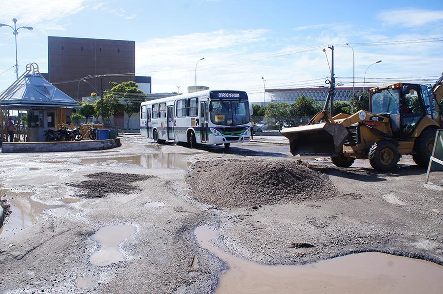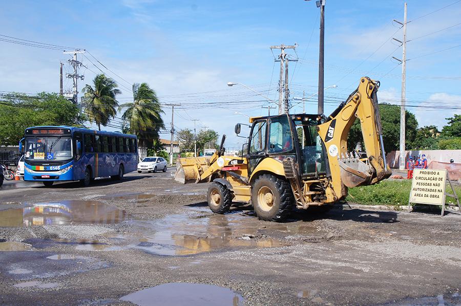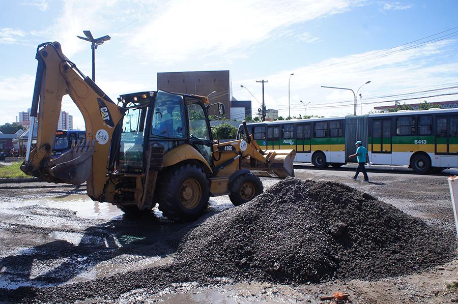 Inicialmente, os operários estão recolhendo, com auxílio de máquinas, o material oriundo da fragmentação do asfalto, e criando, em seguida, a delimitação da área onde as serviços terão sequência no decorrer das próximas duas semanas.