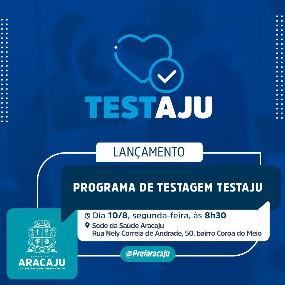 A Prefeitura de Aracaju convida a imprensa para o lançamento, nesta segunda-feira, 10, do Programa TestAju. A solenidade será realizada às 8h30, na sede da Secretaria Municipal da Saúde, localizada na rua Nely Correia de Andrade, 50, bairro Coroa do Meio.