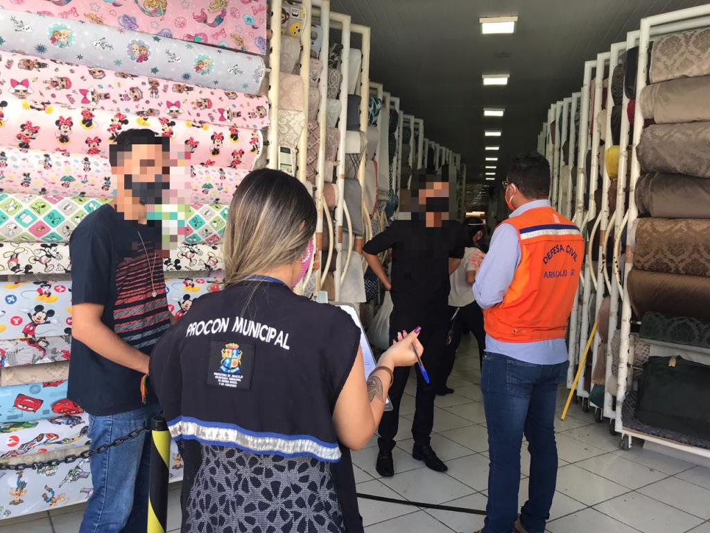 Na manhã desta terça-feira, 11, a Prefeitura de Aracaju, através da Secretaria da Defesa Social e da Cidadania (Semdec), deu continuidade aos trabalhos de fiscalização e orientação na região do centro comercial da capital. A ação teve por objeto averiguar o cumprimento das normas de biossegurança, previstas nos decretos do governo de estado e do município, nos segmentos que possuem autorização para funcionar.