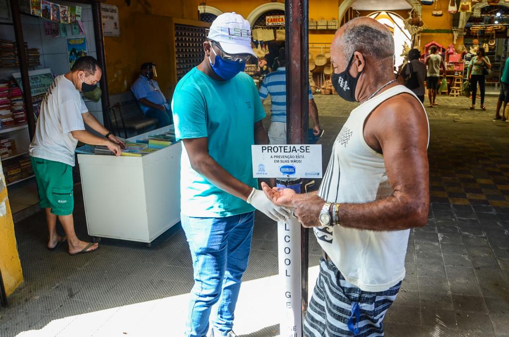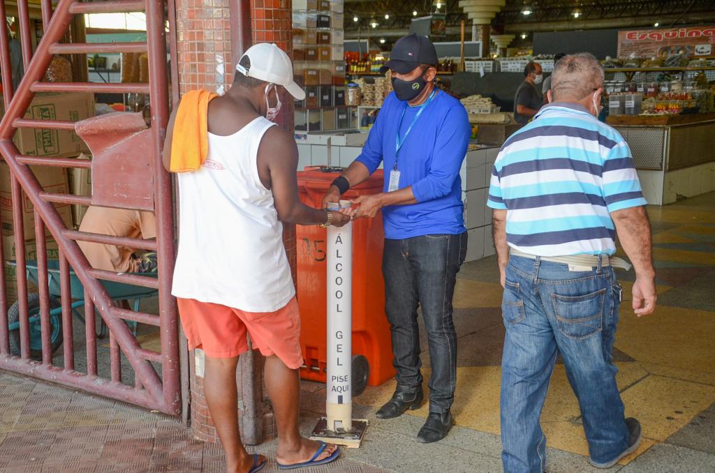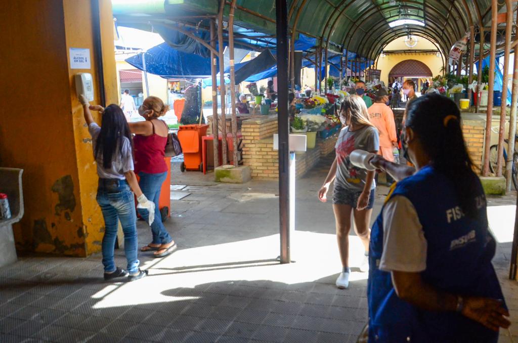 As respectivas medidas vão desde a instalação de material informativo (banner), disponibilização de álcool em gel nos 16 dispensers distribuídos estrategicamente, entrega de máscara às pessoas que chegarem aos centros sem estarem fazendo uso deste item de prevenção, conscientização por parte dos fiscais, a comerciantes e consumidores, objetivando evitar aglomeração, manter o distanciamento social e o uso de máscaras.