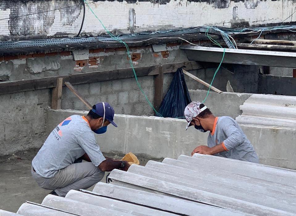 “Foi verificado que a Unidade tinha problemas estruturais na cobertura, fizemos o levantamento das necessidades e foi constatado que seria necessário trocar todo o madeiramento e telhamento, que estava com fissura e era muito antigo. Iniciamos o serviço na semana passada, mas, infelizmente, tivemos dias com chuvas fortes. Agora retomamos o serviço com força total e em todas as áreas afetadas”, enfatiza Carla.